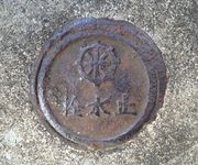 | 2012年8月27日 (月) 20:48 | 荒玉水道(阿佐谷南3丁目)止水栓A・紋章.jpg (ファイル) | 444キロバイト | 荒玉水道(阿佐谷南3丁目)止水栓A・紋章(馬明撮影) | 1 | |